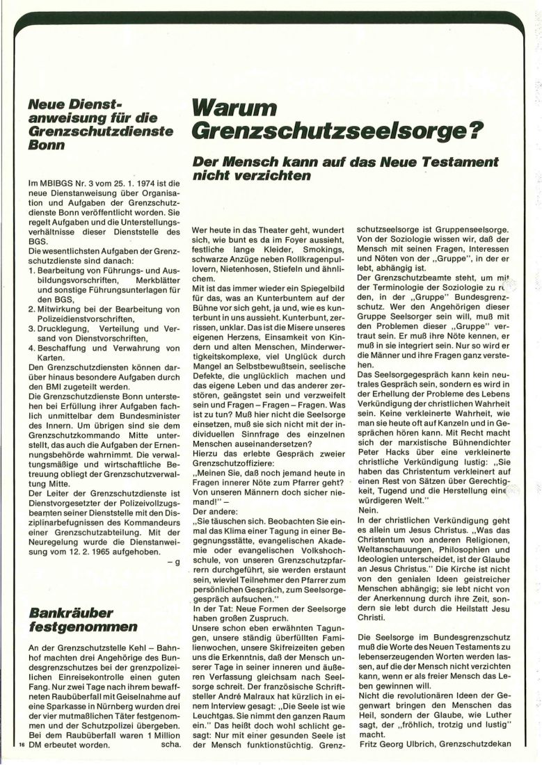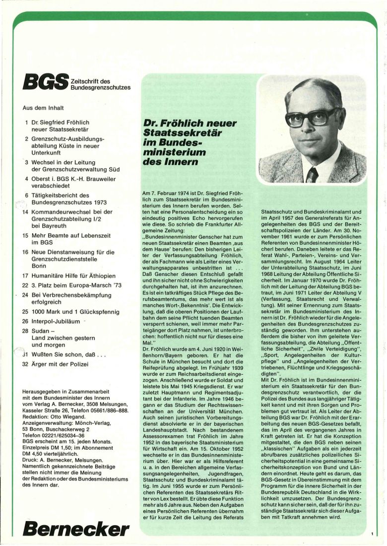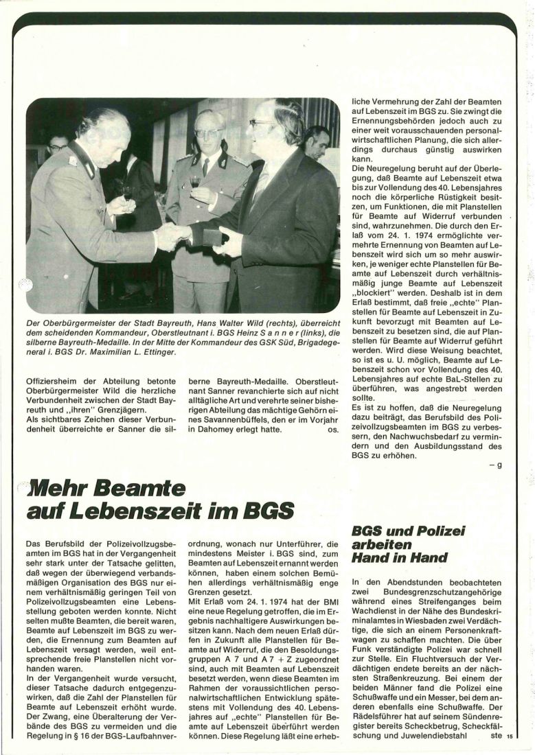 Zeitschrift des BGS Nr. 3 aus 1974