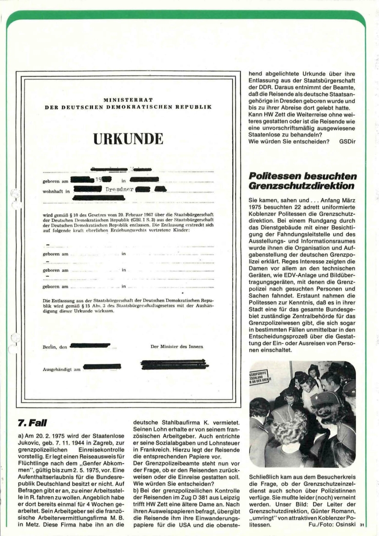 Zeitschrift des BGS Nr. 4 aus 1975