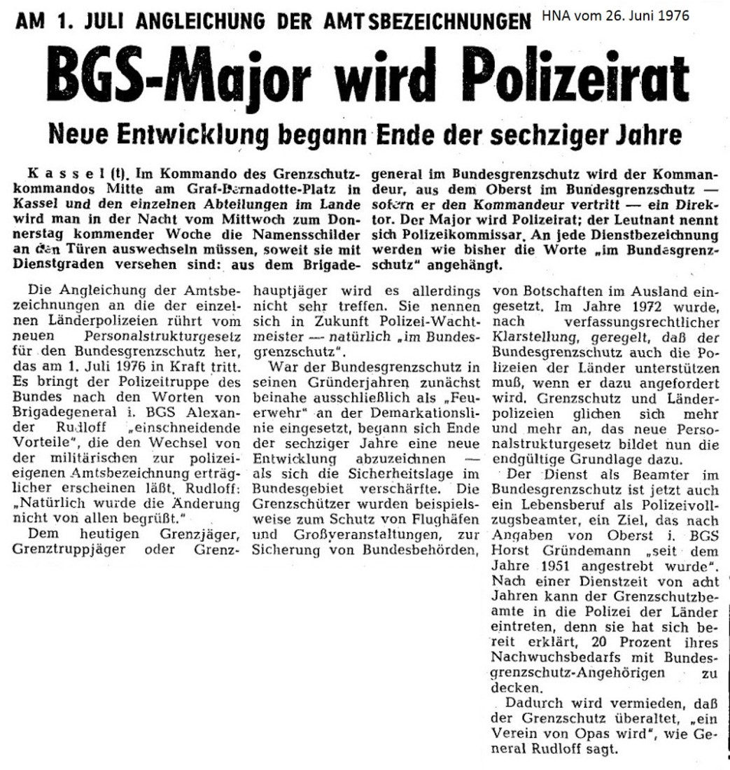 Seit dem 1. Juli 1976 sind beim BGS sämtliche militärischen Ränge abgeschafft
