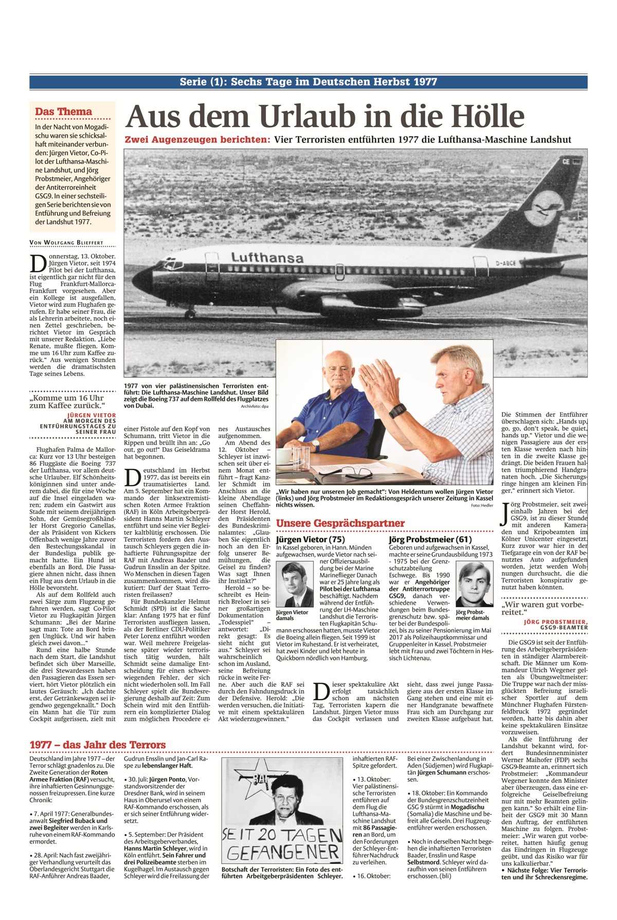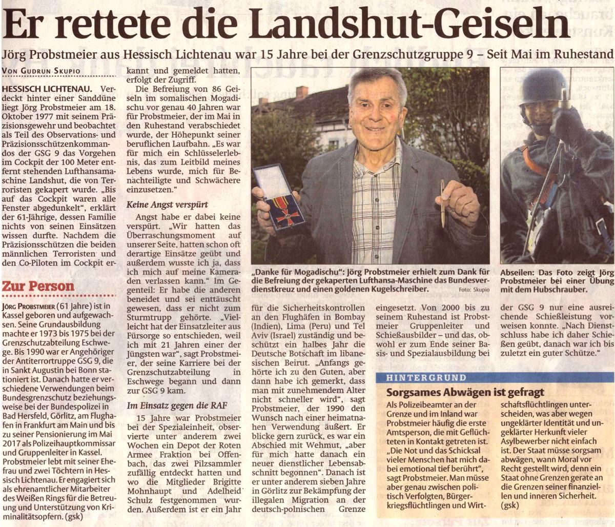 Nordhessen erlebten die Landshut-Entführung: Co-Pilot und Präzisionsschütze im Interview” von der HNA Kassel. Bilder von Kamerad Jörg Probstmeier findet ihr auf der Kameradenseite 108.