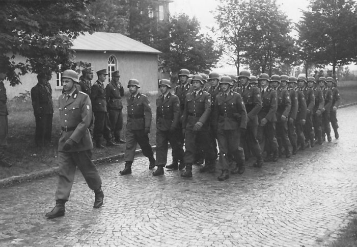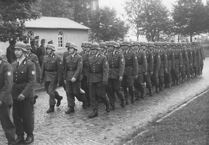 Rückmarsch nach der Vereidigung mit dem Ehrenzug angeführt von Hauptmann Wolfrum