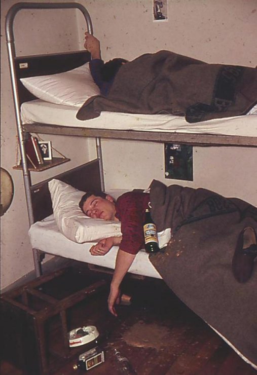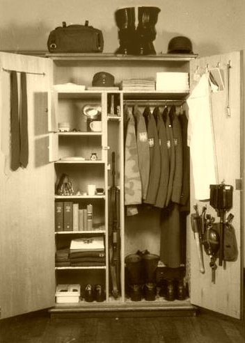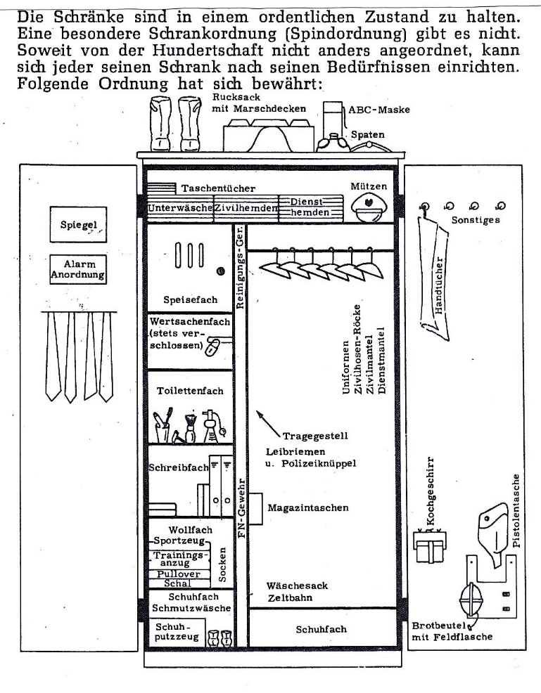 Antreten in der Kleiderkammer, Zeltplane auf den Tresen, Klamotten drauf, Bündel packen und zurück auf die Stube, einräumen in den Spind:
