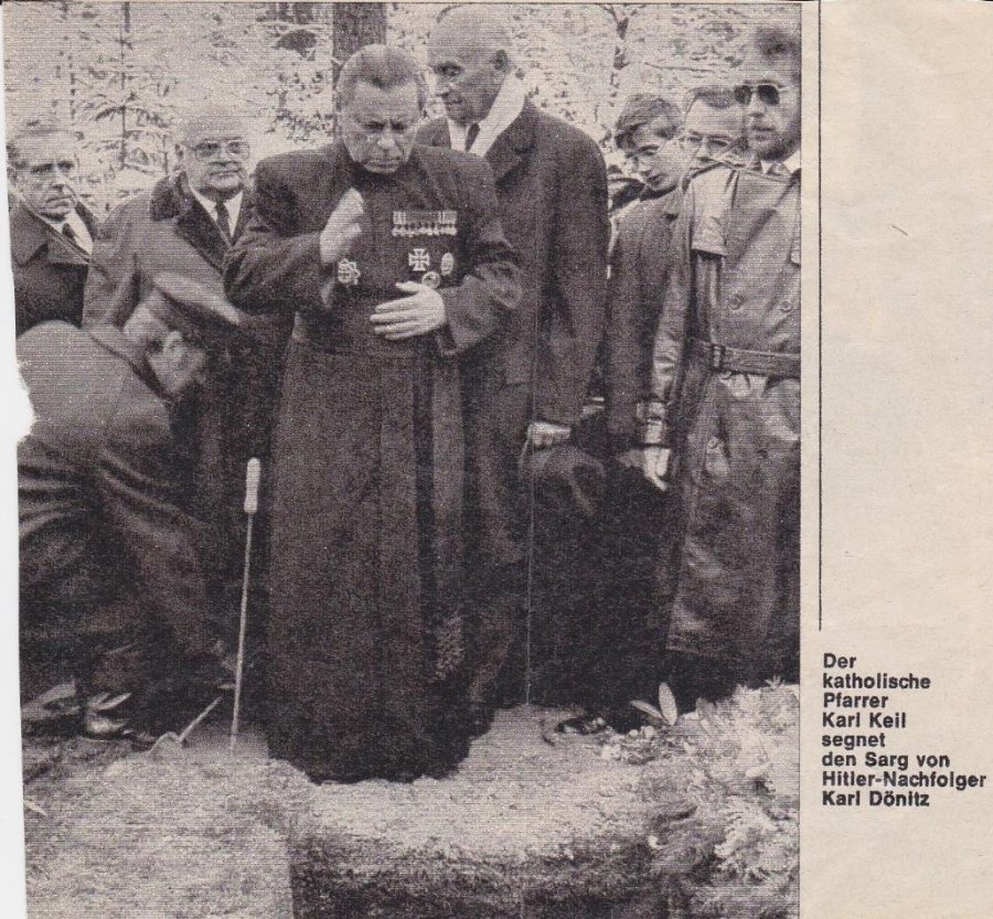 Der katholische Pfarrer des GSK Mitte, Pfarrer Keil, bei der Beerdigung von Admiral Dönitz 1980.