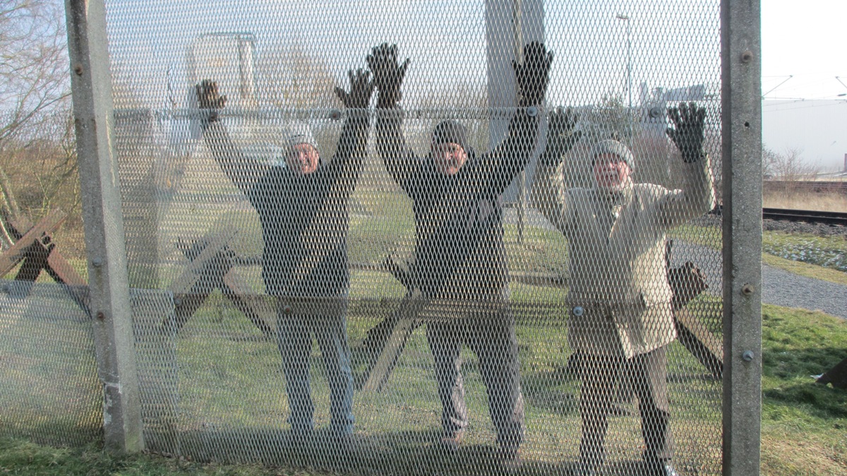 Mit den Kameraden Hans-Karl Gliem und Jörg Probtsmeier am Metallgitterzaun in Obersuhl
