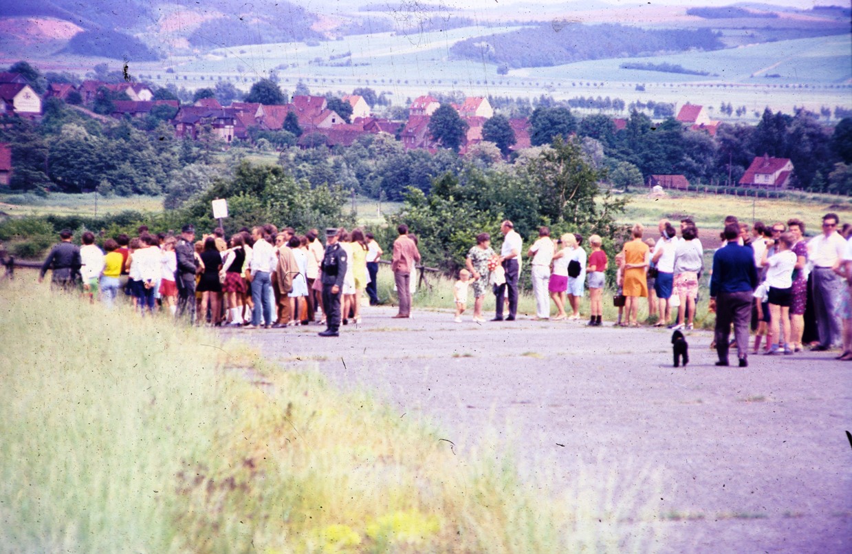 1976: Major Kuhn und POM Gliem mit Besuchern an der Grenze bei Dankmarshausen