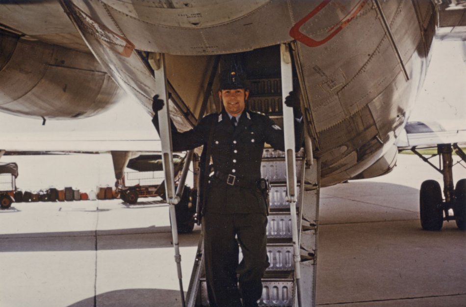 Ich als Polizehauptwachtmeister ( PHW ) bei der Flughafrensicherung in Hamburg; Frühsommer 1972